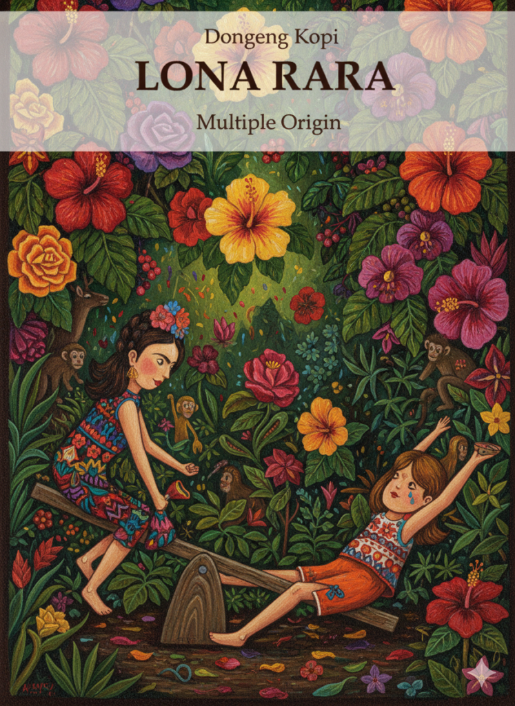 Di Dongeng Kopi, ingatan kolektif itu diramu dalam satu sajian multiple origin yang diberi nama Lona Rara. Kopi ini tidak datang dengan satu suara rasa, melainkan beberapa lapis yang muncul bergiliran. Seruput pertama menghadirkan tubuh yang mantap dan kental, pantulan dari tanah keras yang tidak mudah runtuh. Setelahnya, muncul keasaman jeruk yang bersih dan terang, mengingatkan pada sabana yang lapang dan jujur. Di akhir, manis kelapa dan gula aren hadir pelan, nyaris seperti sisa percakapan yang enggan usai.